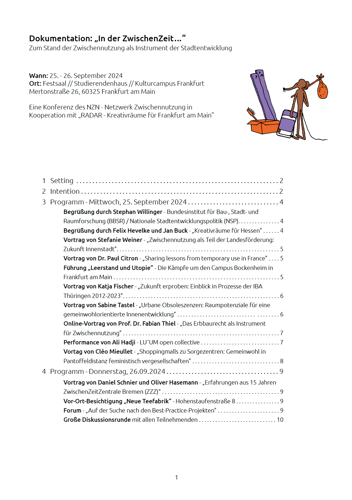 Die Konferenz wird vom Netzwerk Zwischennutzung (NZN) organisiert, gefördert von der Nationalen Stadtentwicklungspolitik und der Senatorin für Bau, Mobilität und Stadtentwicklung Bremen. Wir als Radar unterstützen bei der Planung und Umsetzung.