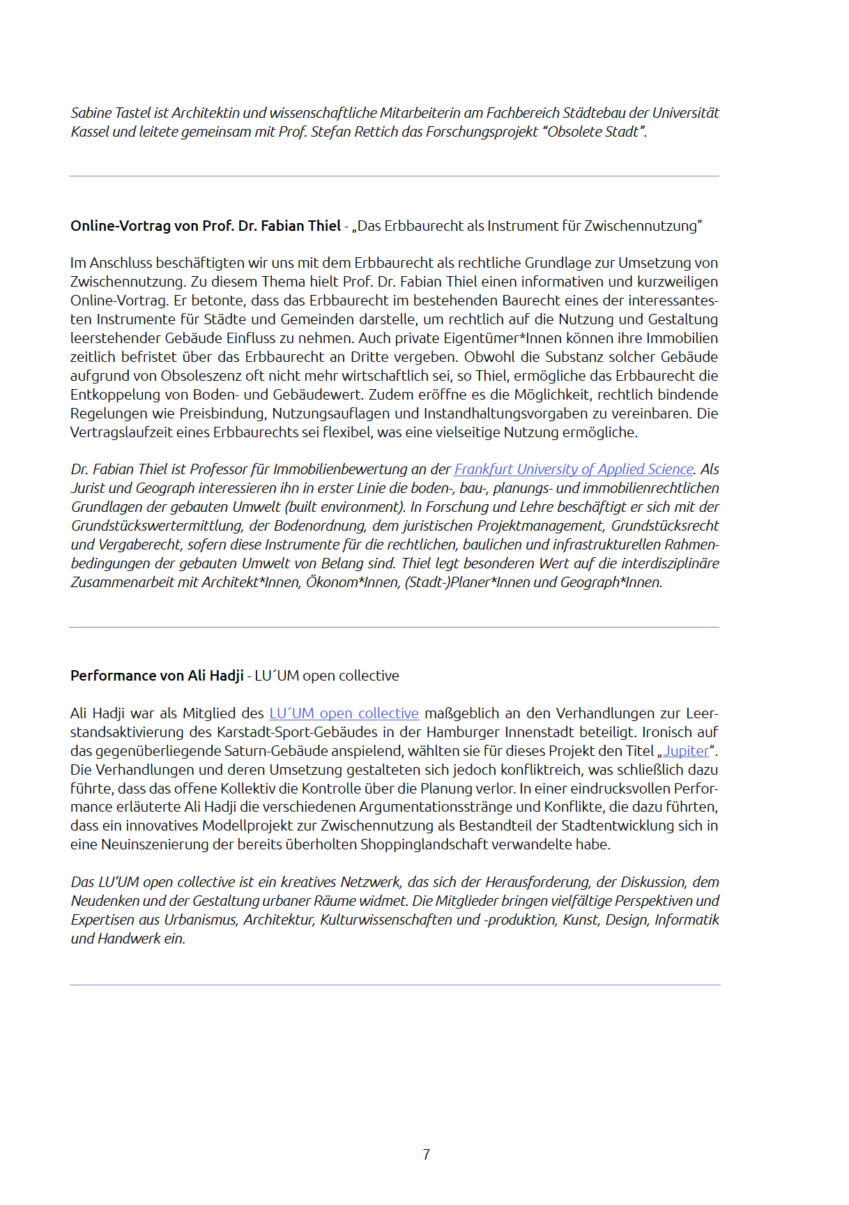 - Publikationen zu Projekten und Handlungsstrategien im Bereich Zwischennutzung