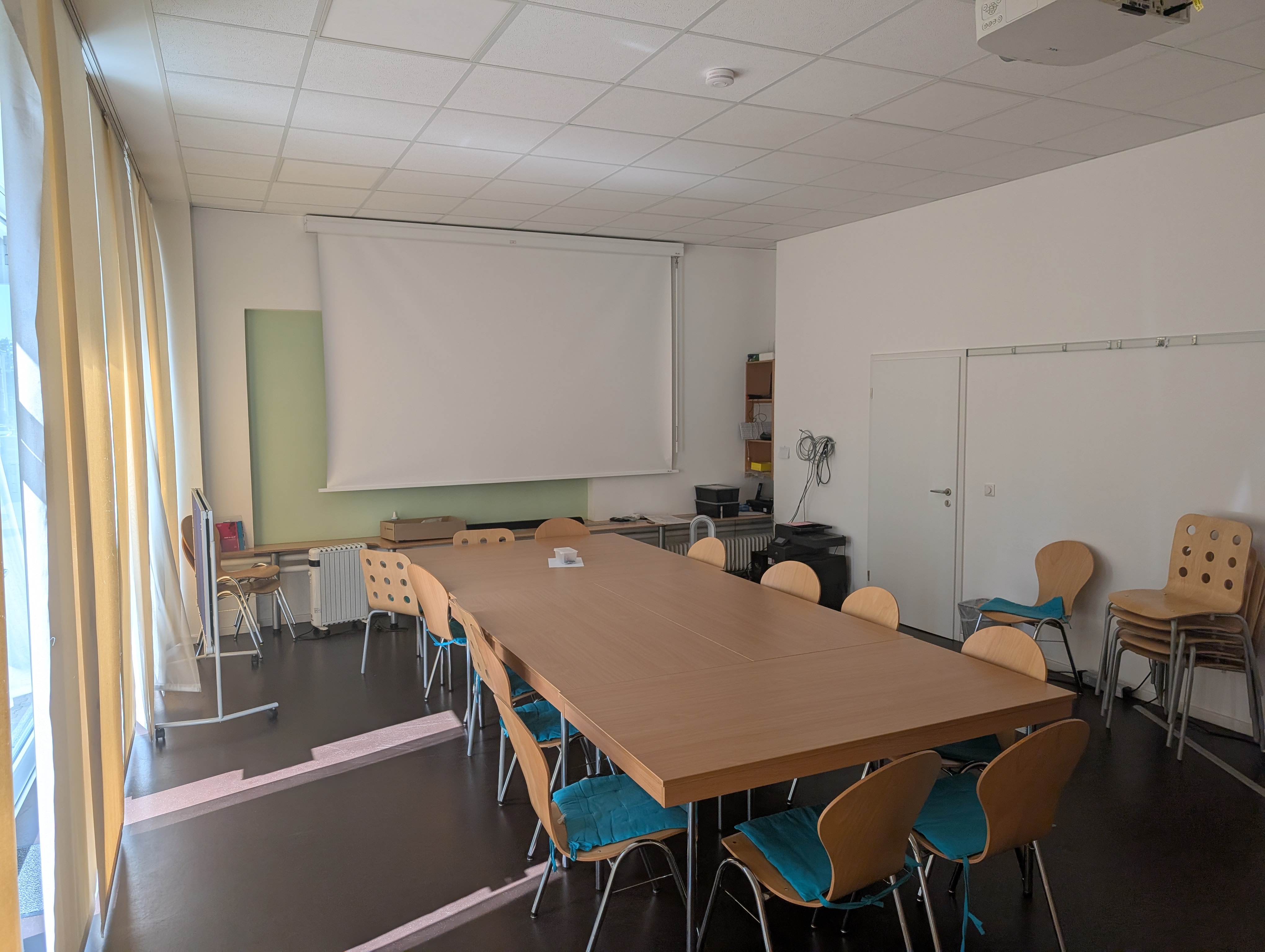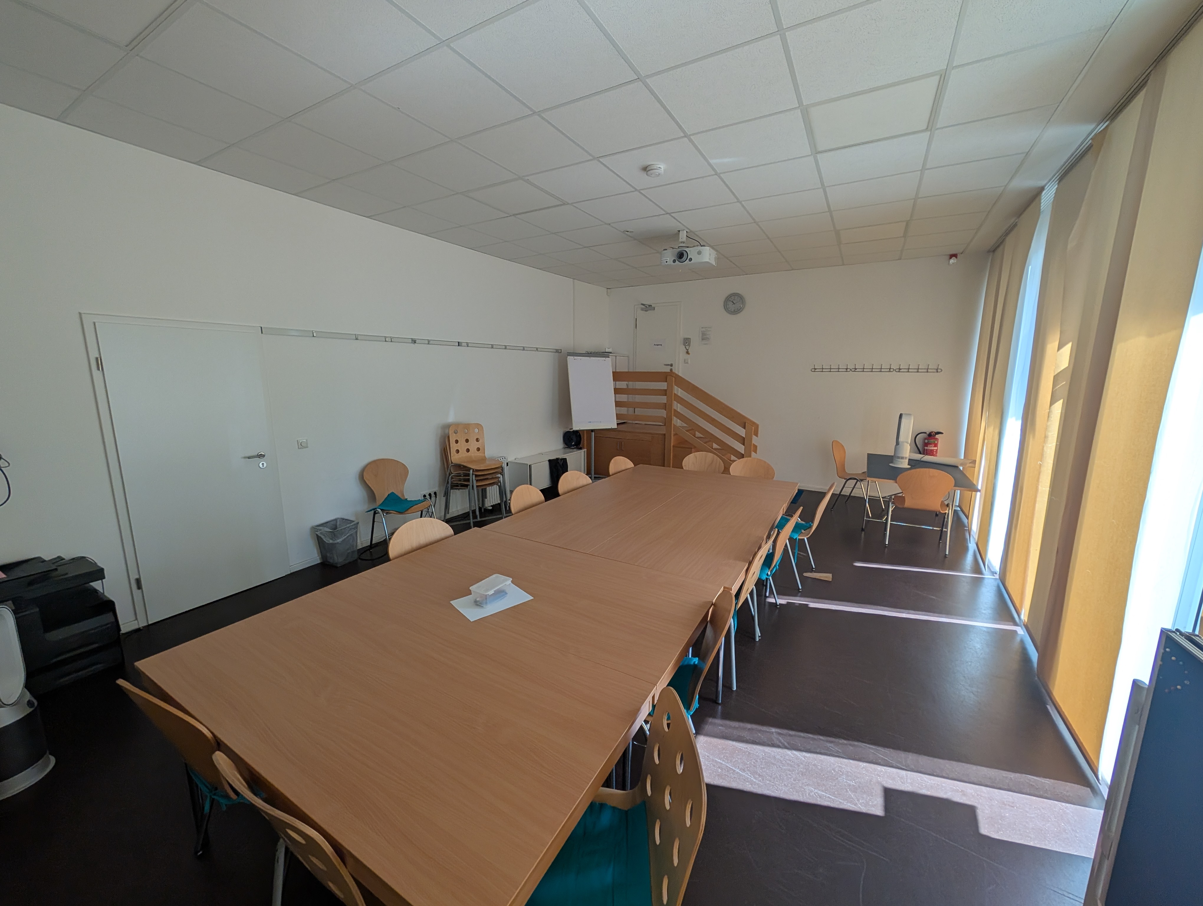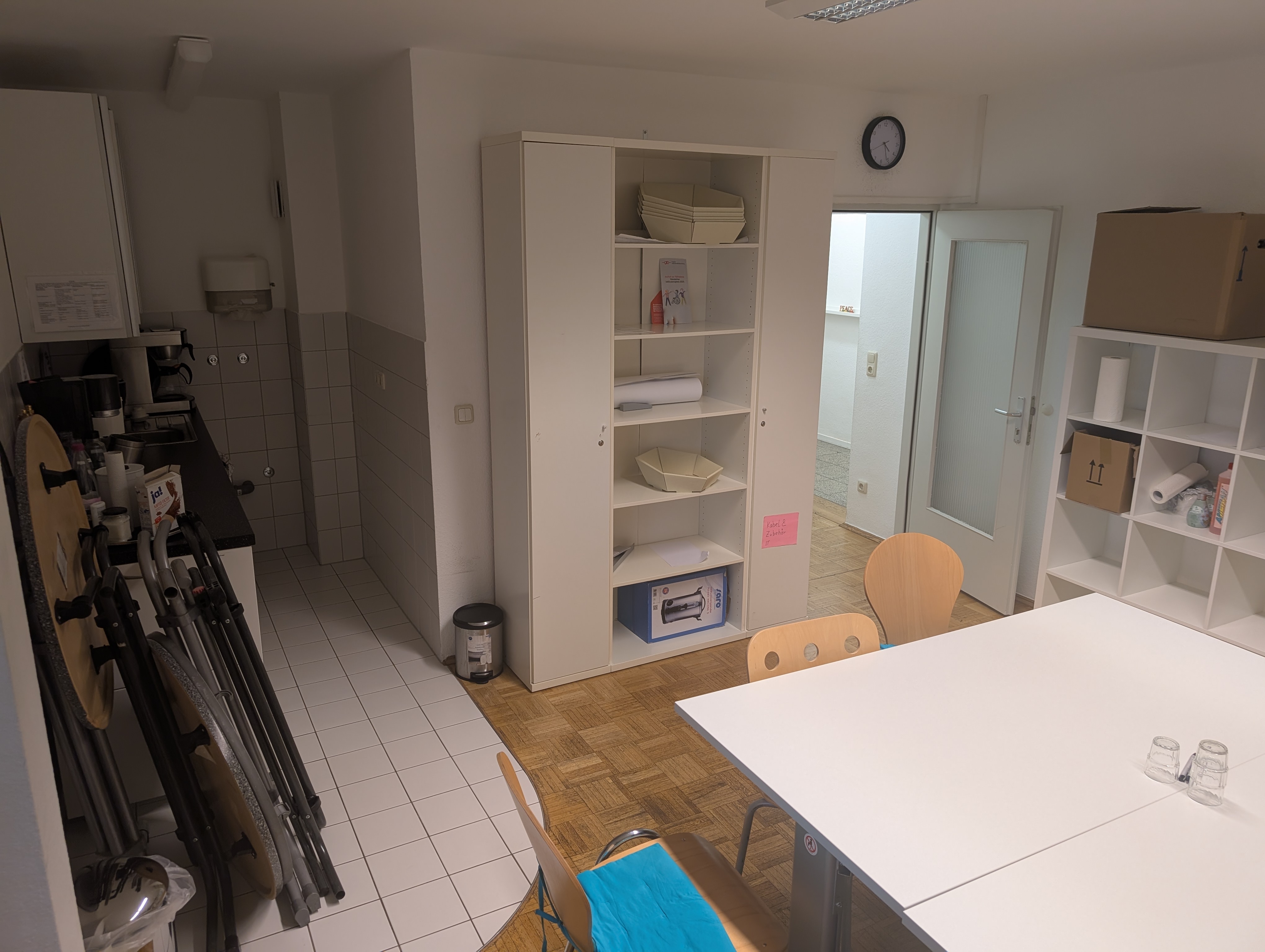 Im hinteren Bereich befinden sich eine praktische Kochecke mit allen Anschlüssen sowie ein separater Raum, der zuletzt als Büro genutzt wurde.