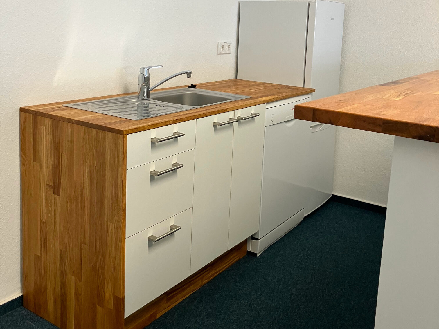 Raum 1: 32,15 m² mit integrierter Küchenzeile (inkl. Kühlschrank & Spülmaschine)