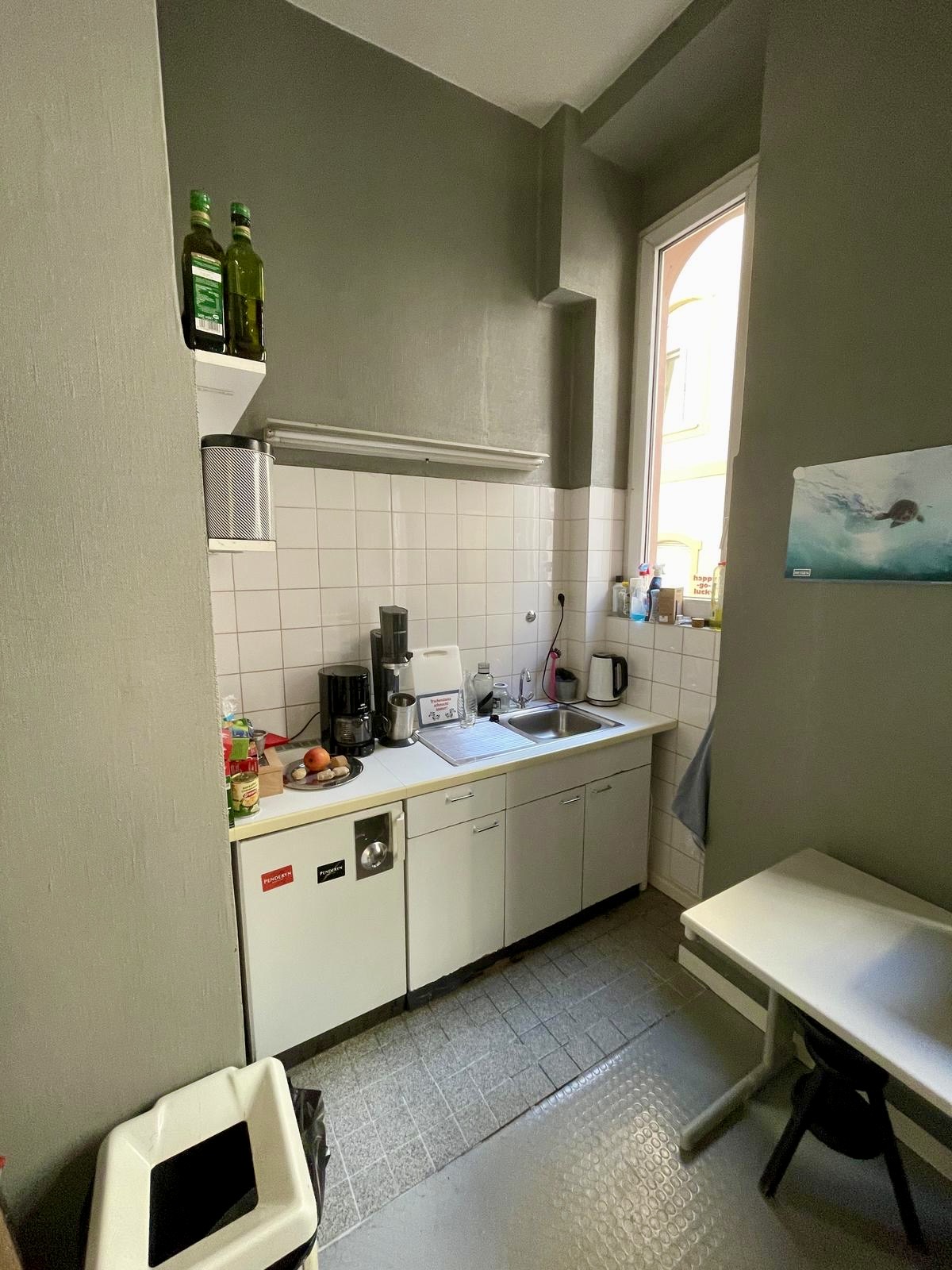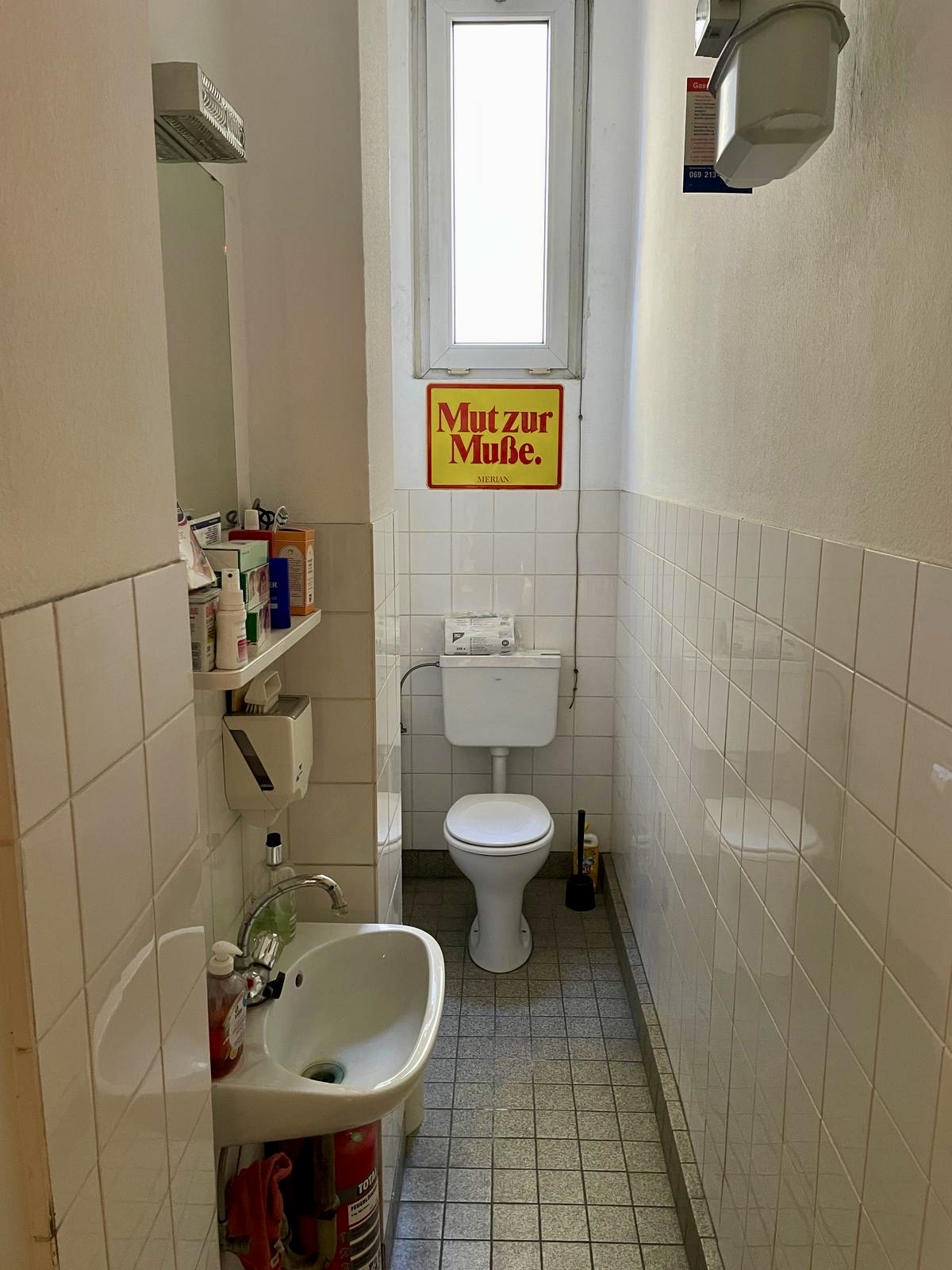 Zuletzt wurde sie über Jahrzehnte von einer Kommunikationsagentur genutzt, weshalb ein gewisser Renovierungsbedarf besteht. In Zusammenarbeit mit dem Architekten der Eigentümerin und dem Umbauförderprogramm der Stadt Frankfurt (beraten durch Radar) kann die Fläche jedoch ideal an die eigenen Raumbedürfnisse angepasst werden.