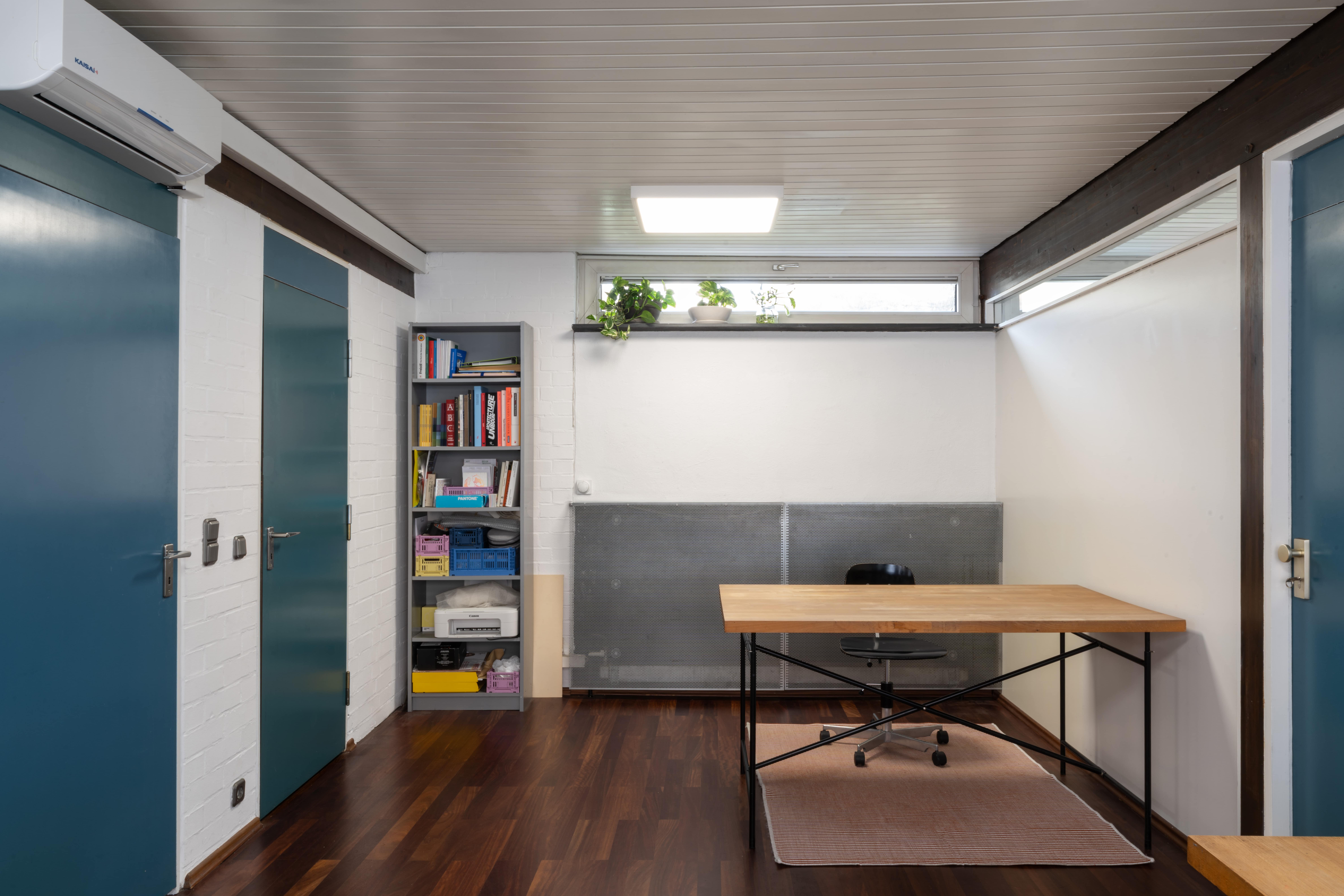 Das Büro liegt in einem ruhigen Hinterhof über einer Werbeagentur. Das Gemeinschaftsbüro mit fünf freischaffenden Kreativen hat eine kleine Küche und ein WC. Gut erreichbar mit der U4 (Haltestelle »Bornheim Mitte« oder »Seckbacher Landstraße«).