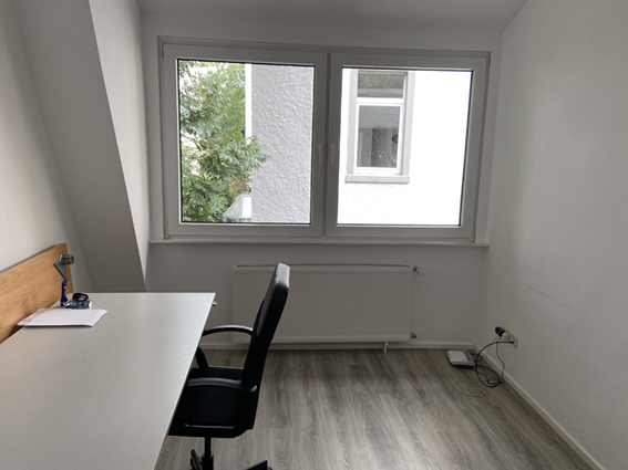 10 qm Büroraum mit großem Fenster zur alleinigen Nutzung in netter Bürogemeinschaft bestehend aus zwei IT-Professionals und einer Kommunikationsdesignerin. Ruhig gelegen in einem Hinterhaus im Frankfurter Nordend. Der Raum befindet sich im 2. Obergeschoss und wird unmöbeliert übergeben. Bei Bedarf kann ein Schreibtisch für den Raum von uns zur Verfügung gestellt werden. Mitbenutzung von Gemeinschaftsräumen und offener Küche. Reinigungsservice alle 14 Tage inklusive. Die Miete beinhaltet Nebenkosten und Internetzugang. Befristet bis Februar 2027